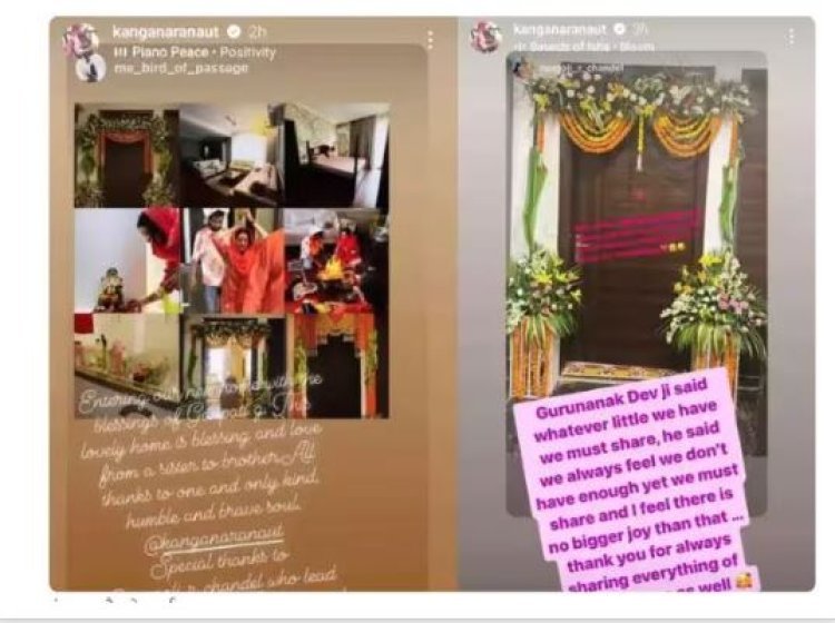 हल्की कंगना रनौत ने अपने इंस्टाग्राम पर इन सब की तसवीरें शेयर की हैं साथ ही घर के उद्घाटन समारोह की भी झलक दिखाई है. यही नहीं कंगना के भाई वरुण रनौत ने भी अपने इंस्टाग्राम पर घर की तस्वीरें शेयर हुए कंगना यानी अपनी बहन को धन्यवाद दिया है... उन्होंने लिखा, ‘धन्यवाद दीदी @kanganaranaut चंडीगढ़ अब घर है.’