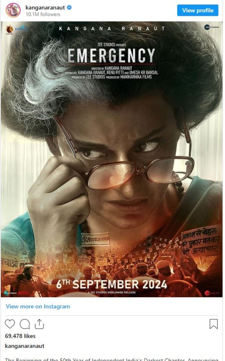 बता दें कि कंगना रनौत ने सोशल मीडिया पर अपनी अपकमिंग फिल्म इमरजेंसी को लेकर डिटेल्स शेयर की . एक्ट्रेस ने फिल्म का नया पोस्टर शेयर किया है जिसमें फिल्म की रिलीज डेट भी मेंशन है. एक्ट्रेस ने लिखा- देश की आजादी के शुरुआती 50 सालों की दास्तां जो एक डारकेस्ट चैप्टर है. इमरजेंसी फिल्म 6 सितंबर 2024 को सिनेमाघरों में रिलीज की जाएगी. भारतीय संविधान के इतिहास के सबसे कॉन्ट्रोवर्शियल एपिसोड की विस्फोटक कहानी दुनियाभर के सिनेमाघरों में रिलीज होने को तैयार है..