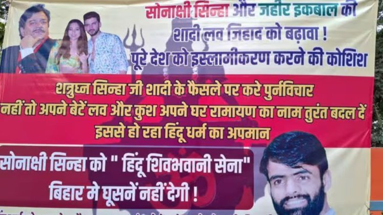 ऐसा बतया गया कि ये पोस्टर हिंदू शिव भवानी सेना की तरफ से लगाया गया है.. जिसमे लिखा गया है, 'सोनाक्षी सिन्हा और जहीर इकबाल की शादी लव जिहाद को बढ़ावा! पूरे देश को इस्लामीकरण करने की कोशिश।'