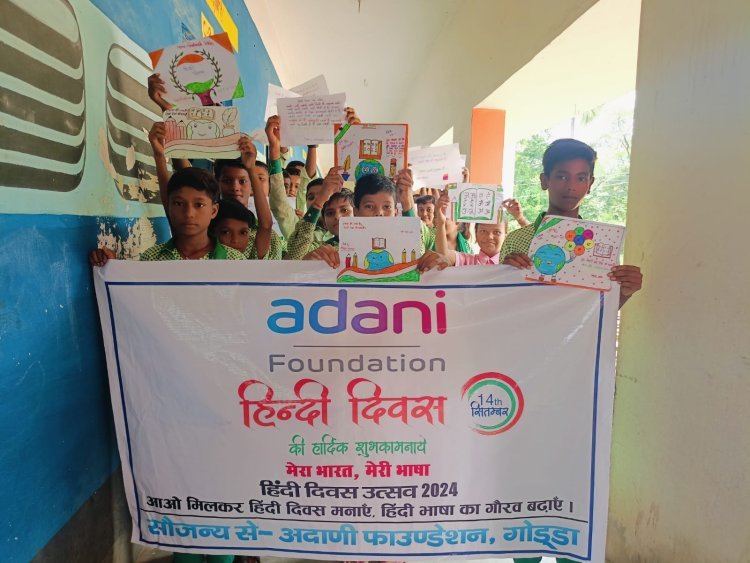 गोड्डा: 14 सितंबर 2024 को गोड्डा स्थित अदाणी पावर प्लांट के आसपास के सरकारी स्कूलों में हिंदी दिवस धूमधाम से मनाया गया. इस कार्यक्रम में 12 स्कूलों के लगभग 800 छात्रों और 40 शिक्षकों ने भाग लिया. जिसमें मोतिया, डुमरिया, बक्सरा, पटवा, कौड़ी बहियार, गुम्मा आदि स्कूल के बच्चों और शिक्षकों ने हिस्सा लिया. कार्यक्रमों की शुरुआत स्कूल से गांव के चौराहे तक निकाली गई एक रैली के साथ हुआ.