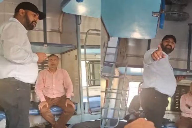 दिल्ली के आनंद विहार से असम जा रही थी! ट्रेन में कानपुर, फतेहपुर, प्रयागराज से ये जवान बैठते हैं! जवानों के लिए कुछ यात्री अपनी सीट छोड़ देते हैं, जबकि कुछ जवान कॉरिडोर में बैठकर अपनी यात्रा करते हैं। इसी वक्त TTE भी आ जाता है! TTE ने जवानों को धमकाना शुरू कर दिया—वीडियो बनाने और ट्रेन से उतारने, जनरल डिब्बे में जाने की धमकी देता है! ये वही TTE है, जो जवानों की कद्र नहीं कर पा रहा है! सीने पर नाम लिखा है N.K. सिंह, भारतीय रेलवे को टैग भी लगा है! ये बार-बार धमकाता है कि जनरल डिब्बे में जाइए?