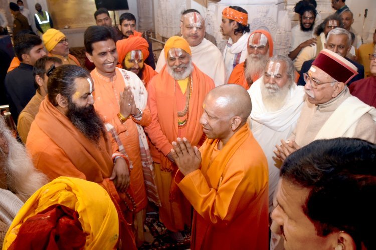 मुख्यमंत्री ने यहां श्री राम जन्मभूमि ट्रस्ट के अध्यक्ष नृत्य गोपाल दास जी महाराज से भी आशीर्वाद प्राप्त किया. सीएम योगी ने साधु संतों के साथ भोजन प्रसाद भी ग्रहण किया. महापौर गिरीश पति त्रिपाठी, विधायक वेदप्रकाश गुप्त, रामचंद्र यादव आदि जनप्रतिनिधियों व भाजपा नेताओं ने रामकथा पार्क पर मुख्यमंत्री का स्वागत किया. सीएम योगी प्रतिष्ठा द्वादशी के मुख्य कार्यक्रम के मुख्य अतिथि के तौर पर पहुंचे.