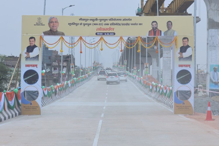 पटना: मुख्यमंत्री नीतीश कुमार ने सोमवार को पटना जिला के भूपतिपुर में आयोजित कार्यक्रम स्थल से मीठापुर-महुली-पुनपुन परियोजना अंतर्गत 1105 करोड़ रुपए की लागत से निर्मित भूपतिपुर से पुनपुन (एनएच-22) तक एलिवेटेड/एटग्रेड पथांश का शिलापट्ट अनावरण कर एवं फीता काटकर लोकार्पण किया.
