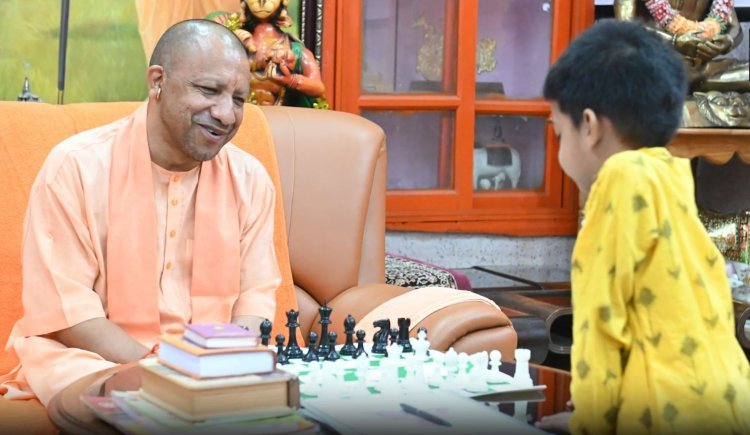 गोरखनाथ मंदिर प्रवास के दौरान मुख्यमंत्री योगी आदित्यनाथ ने देश के सबसे कम उम्र के विश्व शतरंज महासंघ रेटेड खिलाड़ी कुशाग्र अग्रवाल के साथ शतरंज खेल पर उत्साहवर्धन वार्तालाप किया.