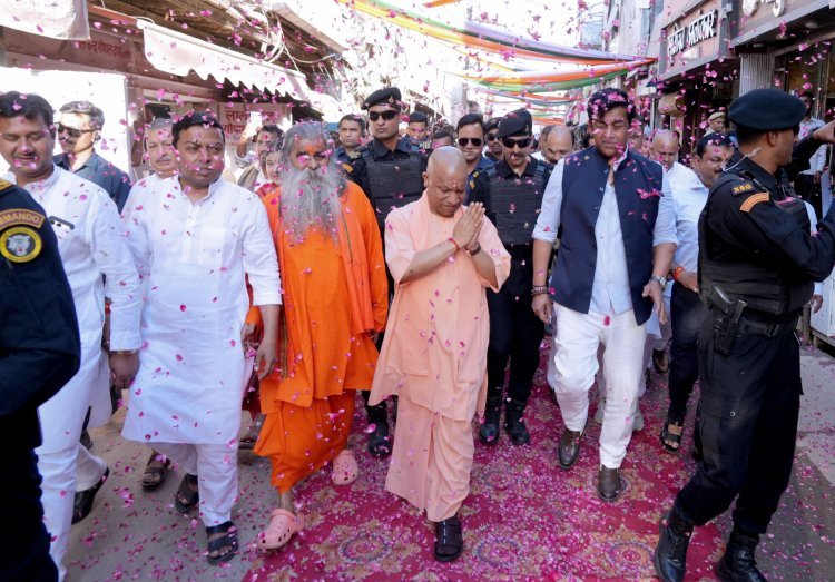 मुख्यमंत्री योगी आदित्यनाथ ने वैदिक मंत्रोच्चार के बीच पांडेयहाता (विरासत गलियारा) में नए कॉमर्शियल कॉम्प्लेक्स की आधारशिला रखी. उन्होंने विधि विधान से भूमि पूजन किया और इसके बाद निर्माण के लिए पहली ईंट रखी. सीएम ने कॉम्प्लेक्स के ड्राइंग मैप का भी अवलोकन किया और प्रस्तावित व्यवस्थाओं की जानकारी ली. शिलान्यास स्थल से लेकर लोकार्पण स्थल तक लोगों ने पुष्पवर्षा कर मुख्यमंत्री योगी आदित्यनाथ का स्वागत किया.