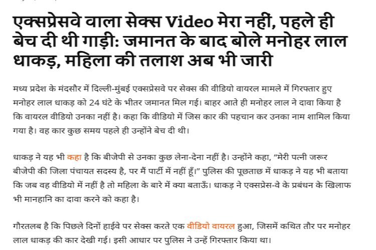 बता दें कि हाल ही में मंदसौर में एक वीडियो वायरल हुआ था जिसमे एक महिला और एक शख्स सड़क पर ही संबंध बनाते दिखाए गए थे. जिसके बाद कार के नंबर के आधार पर पुलिस ने मनोहर लाल धनखड़ को गिरफ्तार किया था. लेकिन अब धनखड़ का कहना है कि वो कार उन्होंने पहले ही बेच दी थी.