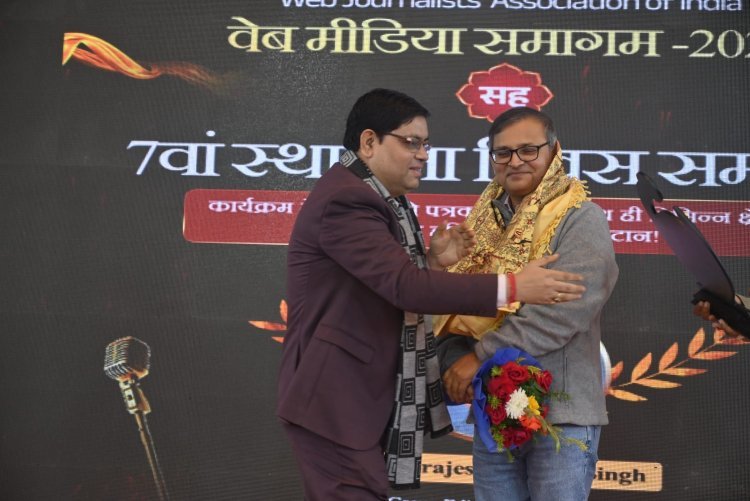 न्यूज़ 18 के ग्रुप एडिटर ब्रजेश कुमार सिंह ने अपने संबोधन में कहा, “डिजिटल युग में खबर सबसे पहले नहीं, बल्कि सबसे सही देने की होड़ होनी चाहिए. वेब पत्रकारों को क्लिक से अधिक क्रेडिबिलिटी पर ध्यान देना होगा.” इस अवसर पर संस्था के राष्ट्रीय अध्यक्ष आनंद कौशल और राष्ट्रीय महासचिव डॉ. अमित रंजन ने अतिथियों को अंगवस्त्र, प्रतीक चिह्न एवं बुके भेंट कर सम्मानित किया.