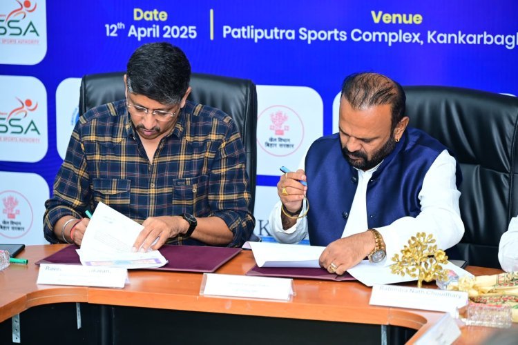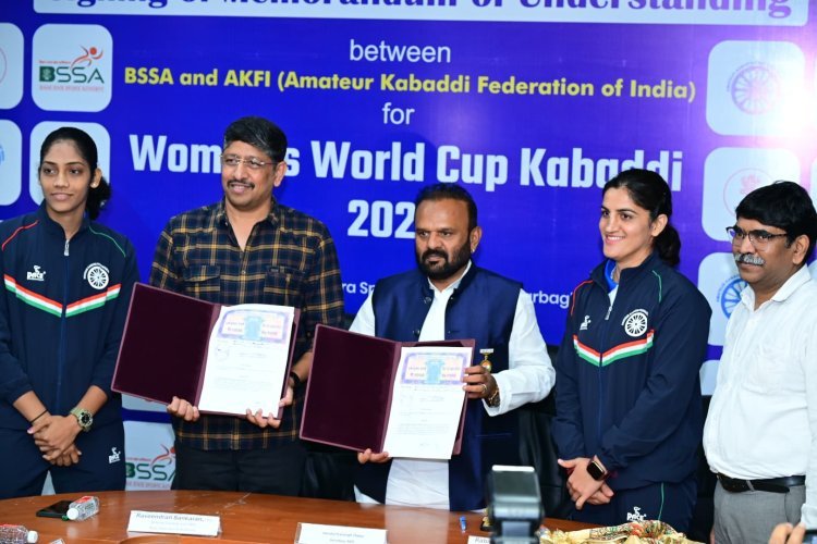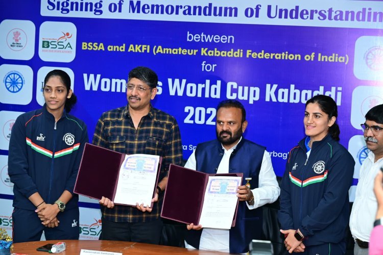 पटना: बिहार में दूसरी बार आयोजित होने वाली महिला कबड्डी विश्व कप 2025 के समझौता ज्ञापन पर आज हस्ताक्षर हुआ. एमेच्योर कबड्डी फेडरेशन ऑफ इंडिया की ओर से फेडरेशन के महासचिव जितेन्द्र प्राणसिंह ठाकुर और बिहार राज्य खेल प्राधिकरण के महानिदेशक सह मुख्य कार्यकारी अधिकारी रवीन्द्रण शंकरण ने हस्ताक्षर किए. बिहार राज्य खेल प्राधिकरण के निदेशक रविंद्र नाथ चौधरी, क्रीड़ा कार्यपालक आनंदी कुमार, खेल विभाग के सहायक निदेशक संजय कुमार, इंटरनेशनल कबड्डी फेडरेशन के डायरेक्टर तेजस्वी सिंह गहलोत तथा बिहार कबड्डी एसोसिएशन के चेयरमैन कुमार विजय सहित अन्य गणमान्य लोग उपस्थित रहे.
